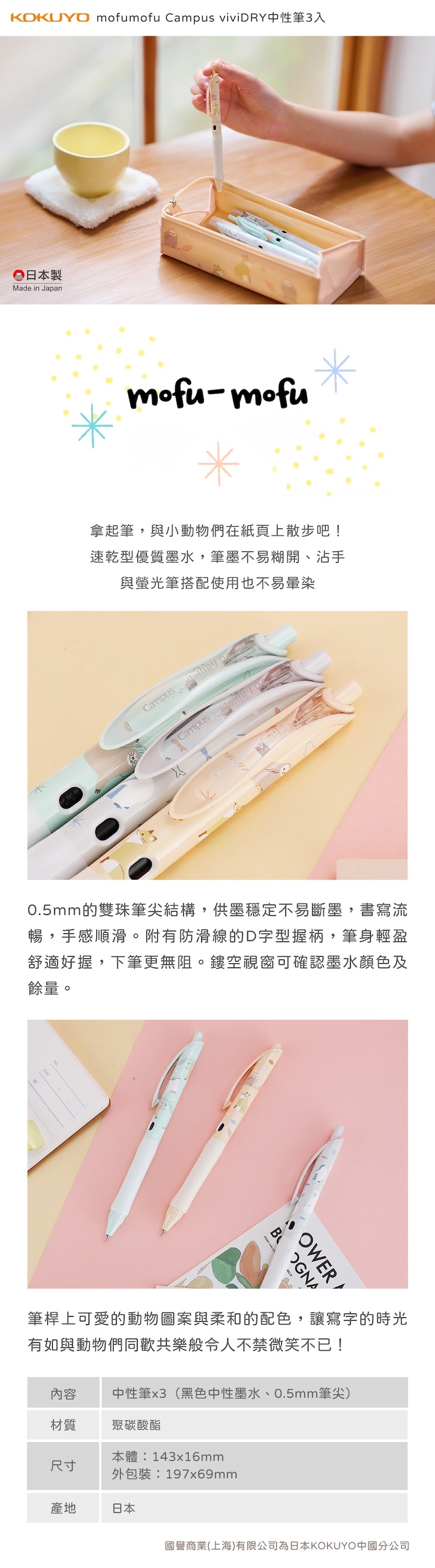 產品名稱:KOKUYO mofumofu viviDRY中性筆3入PR5M302-3S