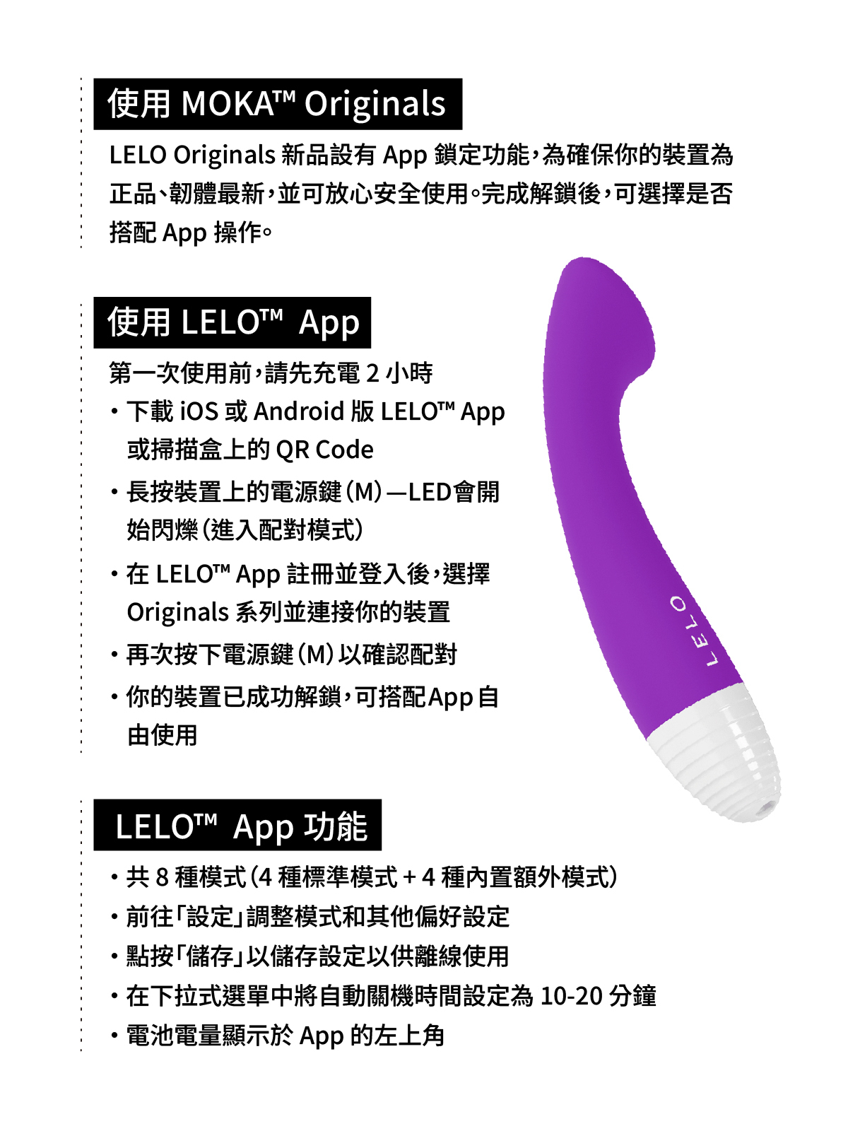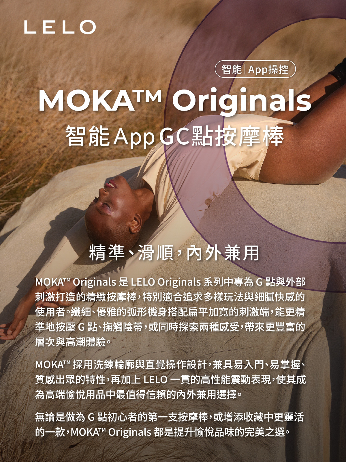 MOKA™ 採用洗鍊輪廓與直覺操作設計,兼具易入門、易掌握、質感出眾的特性,再加上 LELO 一貫的高性能震動表現,使其成為高端愉悅用品中最值得信賴的內外兼用選擇。